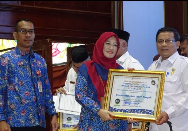 Banda Aceh, InfoMu.co –  Ombudsman RI Perwakilan Aceh menyerahkan penghargaan kepada pemerintah daerah hasil penilaian kepatuhan terhadap standar pelayanan. Kegiatan tersebut berlangsung di Anjong Mon Mata Pendopo Gubernur pada Rabu (22/2) di Banda Aceh.