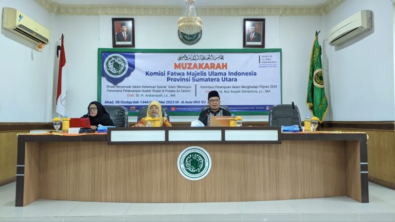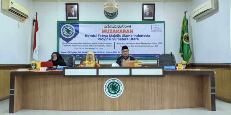 Medan, InfoMu.co – Komisi Fatwa Majelis Ulama Indonesia (MUI) Provinsi Sumatera Utara menggelar muzakarah rutin bulanan pada hari Sabtu, 08 Zulkaidah 1444 H/28 Mei 2023 M. Muzakarah ini menghadirkan narasumber terkemuka yang akan membahas tema “Sholat Berjama’ah Dalam Ketentuan Syari’at Islam (Merespon Fenomena Pelaksanaan Ibadah Sholat di Ponpes Al-Zaytun)”.
