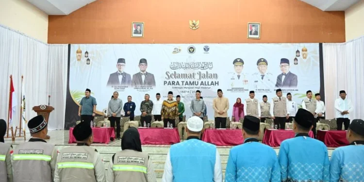 INFOMU.CO | Medan – Gubernur Sumatera Utara Muhammad Bobby Afif Nasution melepas keberangkatan 353 jemaah haji Kelompok Terbang (Kloter) 2 Embarkasi Medan di Asrama Haji Medan, Jalan AH Nasution, Selasa malam, 22 April 2026. Kloter tersebut seluruhnya merupakan jemaah asal Kabupaten Langkat.