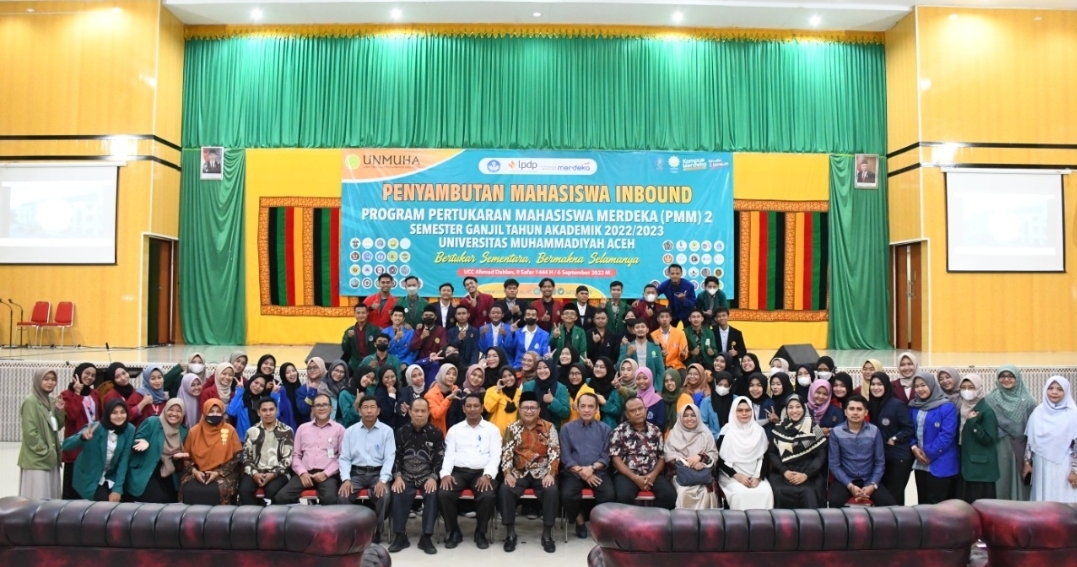 Banda Aceh,InfoMu.co – Rektor Universitas Muhammadiyah Aceh (UNMUHA) Dr. H. Aslam Nur MA, menyambut secara resmi 69 mahasiswa inbound Program Pertukaran Mahasiswa Merdeka (PMM 2) dari 44 Perguruan Tinggi (PT) di luar Sumatera, semester ganjil tahun akademik 2022/2023, di Gedung UCC Ahmad Dahlan, Batoh. Kota Banda Aceh.