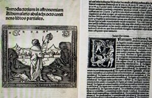 Lembar pertama dan salah satu halaman buku “al-Madkhal Ilā ‘Ilm Ahkām an-Nujūm” karya Abu Ma‘syar al-Balkhī (w. 272 H/885 M) dalam bahasa Latin, diterjemahkan pada tahun 1506 M
