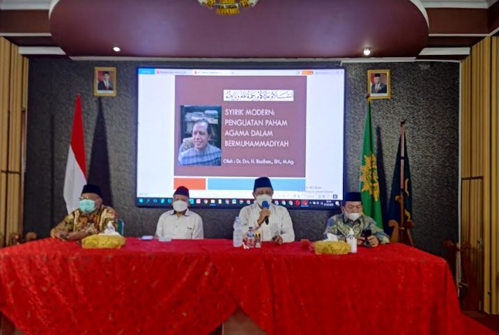 Wakil Ketua Pimpinan Wilayah Muhammadiyah Jawa Tengah yang juga Wakil Ketua Badan Pembina Harian (BPH) Universitas Muhammadiyah Kudus,  Dr. Drs. H. Rozihan, S. H., M.Ag., menyampaikan materi pengajian dengan tema  “Syirik Modern : Penguatan Paham Agama Dalam Bermuhammadiyah”.
