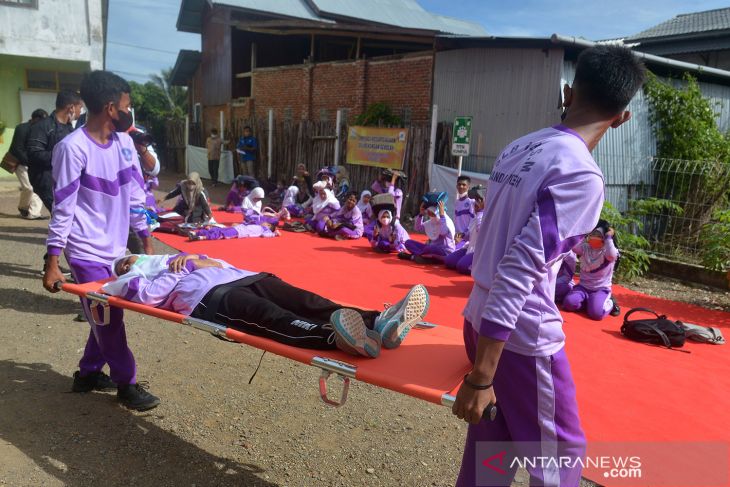 Simulasi gempa dan tsunami dengan menerapkan protokol kesehatan digelar Badan Penanggulangan Bencana Aceh bersama Human Initiative Rescue, TNI dan Polri di Sekolah Luar Biasa (SLB) itu sebagai bentuk edukasi dalam upaya meningkatkan kewaspadaan dan mengurangi resiko bencana di lingkungan sekolah yang berada di daerah rawan bencana.