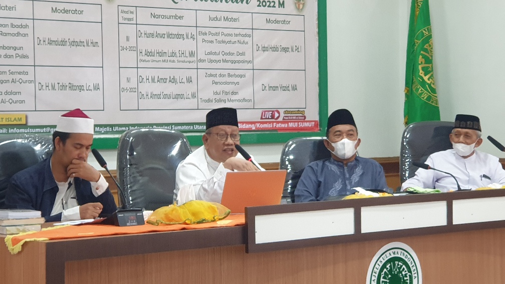 Majelis Ulama Indonesia (MUI) Sumatera Utara menggelar mudzakarah Ramadan 1443 H. Agenda kegiatan Komisi Fatwa itu menyajikan delapan topik bahasan menarik. Muzakarah berlangsung setiap Ahad masing-masing dengan dua tema.