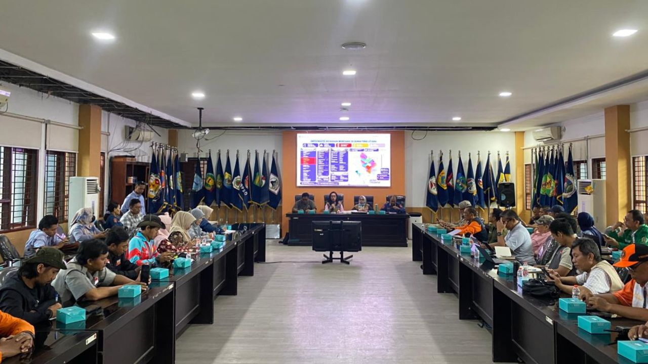 INFOMU.CO ! Binjai — Badan Penanggulangan Bencana Daerah (BPBD) Provinsi Sumatera Utara menggelar rapat koordinasi bersama Organisasi Perangkat Daerah (OPD) teknis dan relawan kebencanaan, Jumat (19/12/2025). Kegiatan ini berlangsung di Aula Pertemuan BPBD Provinsi Sumatera Utara, KM 10,3 No. 8, Jalan Medan–Binjai, Kecamatan Sunggal, Kabupaten Deli Serdang.