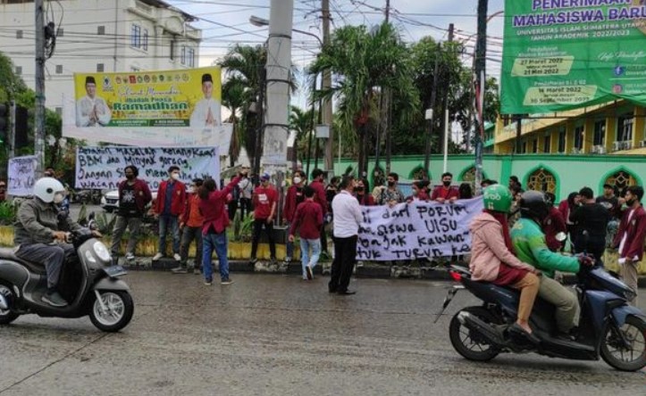 Di sisi lain, segelintir mahasiswa UISU (Universitas Islam Sumatera Utara) tampak berunjuk rasa di depan kampus mereka di Jalan Sisingamangaraja Medan. Mereka tampak membawa spanduk berisi tuntutan.