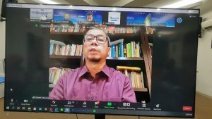 Webinar Riset Foto Irsan Mulyadi itu dihadiri Ketua Prodi MIKOM-UMSU Rahmanita Ginting Phd, Sekretaris Dr.Muhammad Thoriq dan Kabiro Humas UMSU Dr. Ribut Priadi. (Syaifulh)