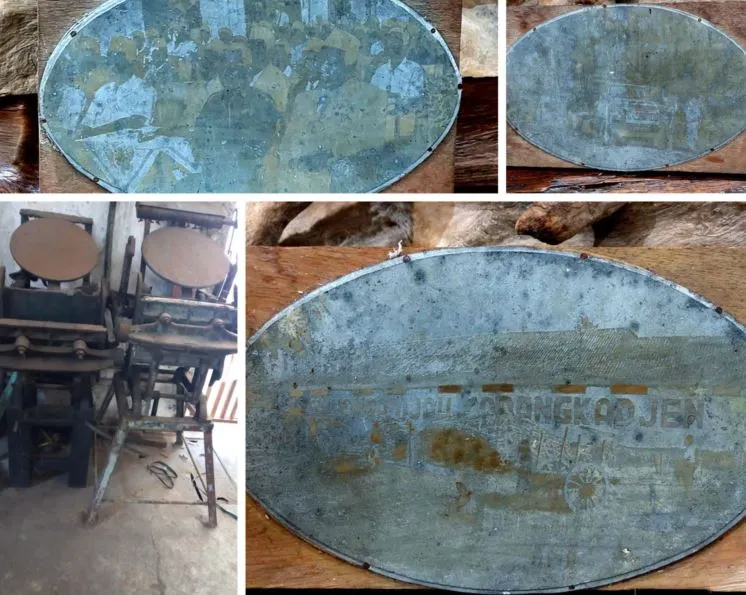 Ketika berita mesin handpress KH Ahmad Dahlan ini viral di medsos, Ali kemudian teringat keberadaan ketiga plat tersebut. Setelah dicari akhirnya ketemu. Ketiga plat itu bentuknya oval. Berukuran berukuran 24 cm x14,5 cm. Bahannya dari timah dilapisi kayu jati.