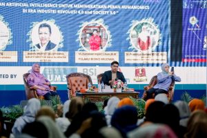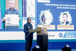 Kuliah Umum dan Talkshow yang mengusung tema “Peran Artificial Intiligence untuk Meningkatkan Peran Humanomic di Era Industri Revolusi 4.0 dan Srociety 5.0” dihadiri lebih 300 mahasiswa dan pelajar itu dibuka secara resmi oleh Wakil Rektor I UMSU Prof. Dr. Muhammad Arifin SH Mhum.