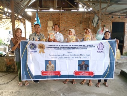Kegiatan Program Kemitraan Masyarakat (PKM) ini dilaksanakan di Medan dan Kabupaten Deli Serdang sejumlah pelaku UMK di medan dan kabupaten Deli Serdang mendapatkan bimbingan teknis. Pendampingan ini mencakup proses administrasi, persyaratan dokumen, hingga tata cara pemenuhan verifikasi dan validasi sesuai standar dan kriteria kehalalan produk yang ditetapkan oleh Badan Penyelenggara Jaminan Produk Halal