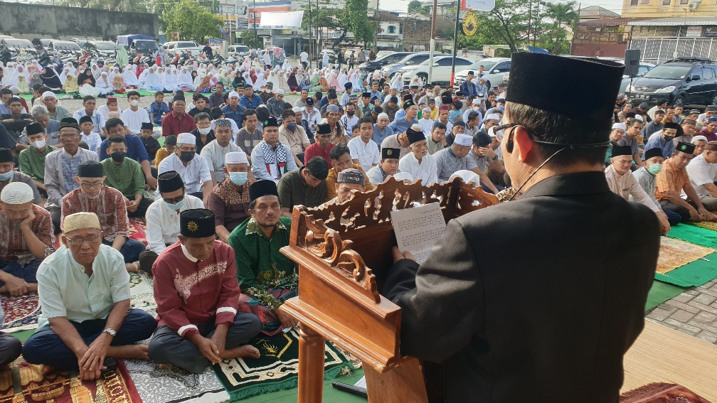 Pesan-pesan penting yang disampaikan Dr. Syafri MA itu mengingatkan semua jamaah untuk kembali kepada fitrah, menjaga kesucian setelah sebulan Ramadan berlalu. (Syaifulh)