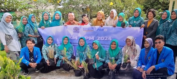 Wakil Dekan 3 FK Dr. dr. Muhammad Edy Syahputra Nasution, dr. Emni Purwoningsih dan mahasiswa tim PKM-PM tahun 2024 menyerahan bantuan kepada Ketua tim PKK Kecamatan Tanjung Beringin dan kemudian dilanjutkan dengan dilakukannya penanaman bibit tersebut di salah satu lokasi komplek Kantor Cabang Tanjung Beringin.
