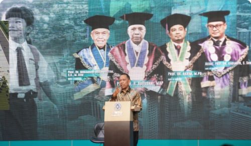 Prof. Agussani menyampaikan kebanggaan atas tampilnya para lulusan yang menyampaikan pesan-pesan dengan narasi kuat, bukan hanya dari sisi akademik tetapi juga dari aspek soft skill dan daya tahan.