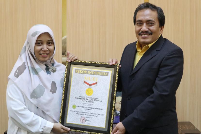Jakarta, InfoMu.co – Universitas Muhammadiyah Jakarta (UMJ) kembali mendapatkan penghargaan MURI untuk kedua kalinya dari program Kuliah Kerja Nyata (KKN) yang diselenggarakan pada bulan Juli tahun 2021. Penghargaan ini diperoleh dalam kategori sebagai Perguruan Tinggi yang melaksanakan kuliah kerja nyata dengan luaran media sosial terbanyak.