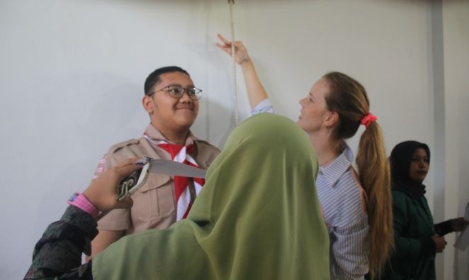 “Lalu mereka belajar menghitung di dalam bahasa Aceh. Seperti ” number one, in aceh you can say sa, if number five you can say limong”. Dan mereka sangat senang dengan keramahan tersebut.