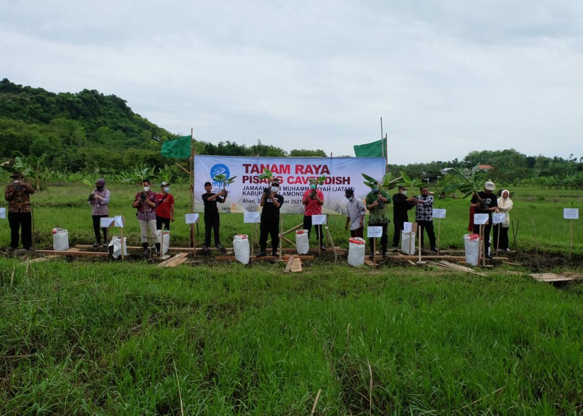 Lamongan, InfoMu.co – Majelis Pemberdayaan Masyarakat MPM PP Muhammadiyah lakukan Tanam Raya Pisang Cavendis di Lamongan pada (28/11). Pisang Cavendis merupakan salah satu bentuk inovasi budidaya pertanian, sebab memiliki potensi ekonomi yang lebih baik dibandingkan dengan produk pertanian tanaman pokok padi maupun jagung.