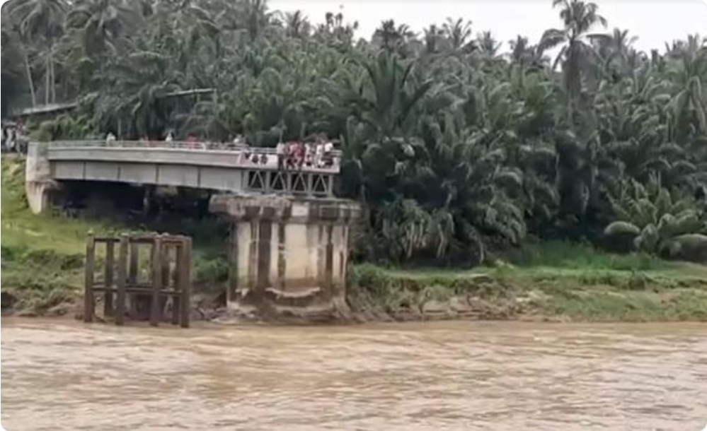 BIREUEN – Puluhan warga jatuh ke sungai akibat jembatan ambruk di Desa Awe Geutah, Kecamatan Pesangan Siblah Krung, Kabupaten Bireuen, Provinsi Aceh.