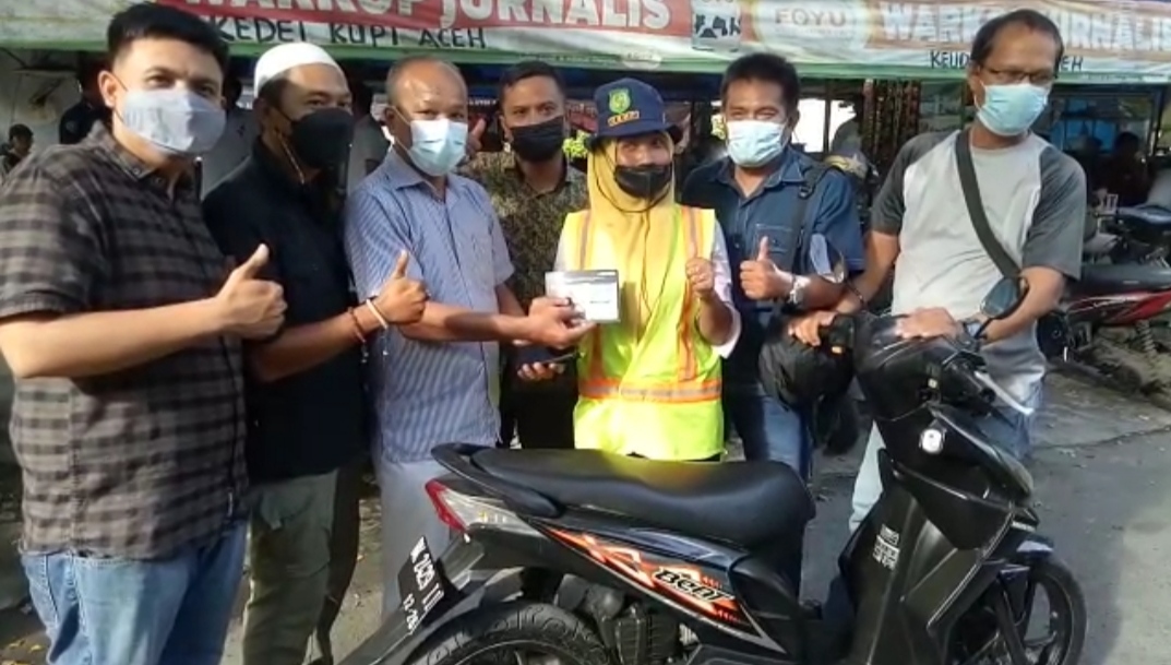 Sepeda motor itu diterima Suratinem warga Kabupaten Deliserdang, hasil bantuan dari rekan-rekan Warkop Jurnalis, Rabu (5/1/2022).