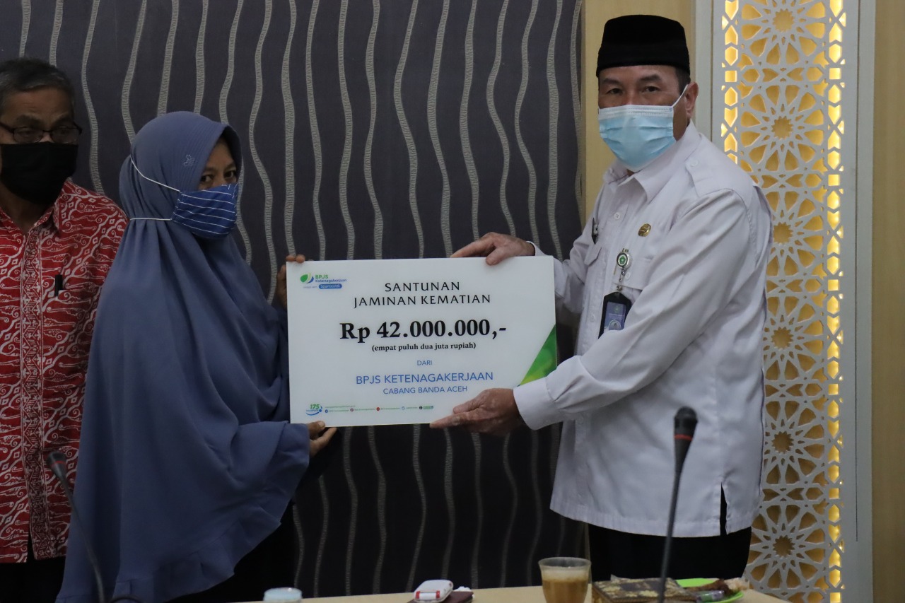 Banda Aceh, InfoMu.co – Dalam menyambut Hari Pelanggan Nasional 2021, BPJS Ketenagakerjaan menyerahkan santunan dana kematian kepada karyawan PPNPN UPT Asrama Haji Embarkasi Aceh, di Meeting Room Gedung KDP Sekretariat Jl. T. Nyak Arif No. 128, Banda Aceh. Senin (6/9).