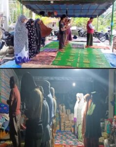 *Foto: tampak jamaah Ranting Muhammadiyah Pematang Cengal, Tanjungpura —menegakkan salat berjamaah di posko pengungsian—. Dokumentasi diambil zuhur tanggal 2 Desember dan Isya tanggal 4 Desember