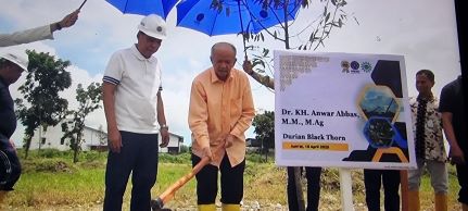 Terakhir ketua PP Muhammadiyah Anwar Abbas berkenan untuk menanam satu batang pohon durian jenis black torn, satu jenis durian kelas premium.