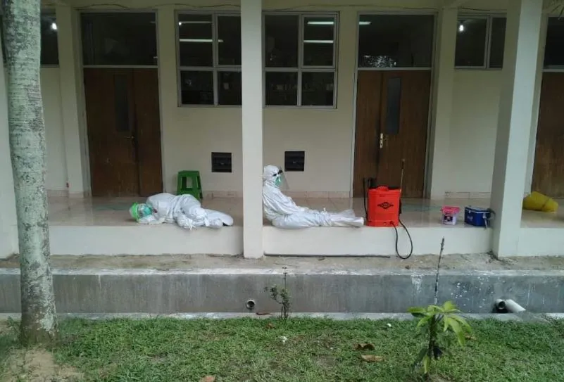 Proses pemulasaran jenazah tidak dilakukan di kamar jenazah tapi biasa dilakukan di ruang isolasi, sebagai kelengkapan dalam merukhti jenazah kami gunakan klorin dan alkohol.