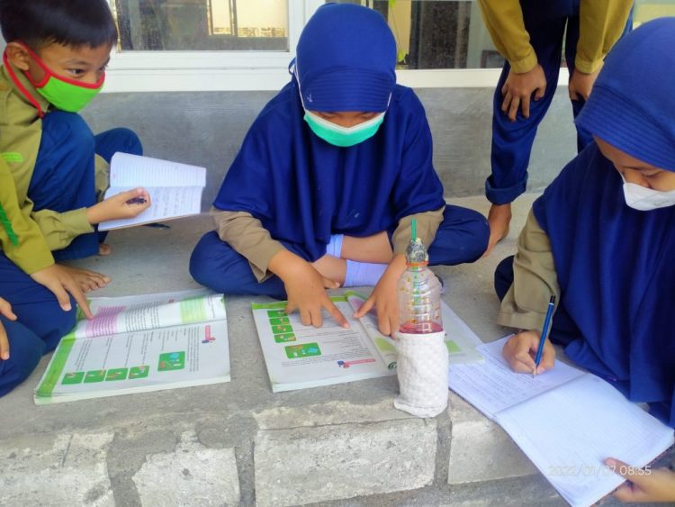 Setelah pembiasaan seluruh siswa masuk kelas untuk melakukan pembelajaran, termasuk kelas 5 yang melakukan kegiatan praktek membuat thermometer sederhana dari bahan bekas yakni botol dan sedotan, Jum’at (7/1/2022)
