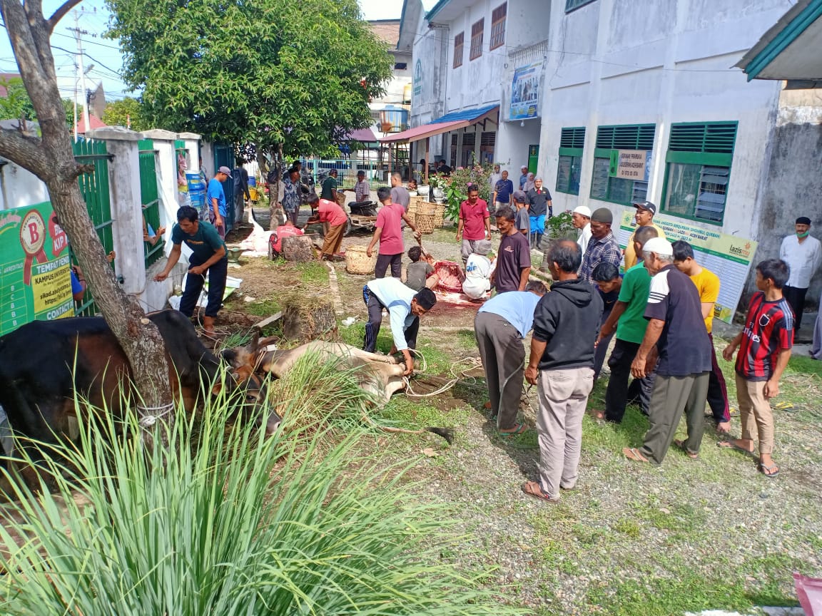 Meulaboh, InfoMu.co – Panitia qurban Muhammadiyah (qurbanmu) Lazismu Aceh Barat melaksanakan penyembelihan hewan qurban sebanyak 24 ekor hewan kurban diantaranya 7 ekor Sapi, 2 ekor kerbau dan 15 ekor kambing.
