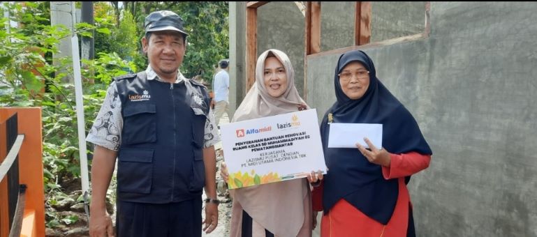 Lazismu PP Muhammadiyah melalui Lazismu Pematangsiantar bersama Alfamidi menyerahkan bantuan secara simbolis.