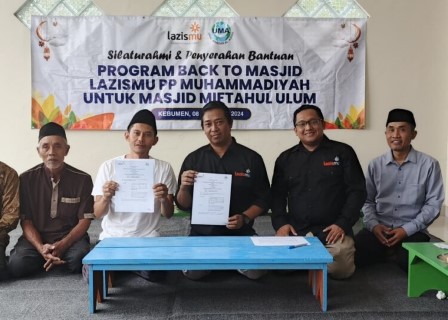 Bantuan diserahkan dalam bentuk dana renovasi senilai Rp 50.000.000, yang diterima oleh jajaran takmir Masjid Miftahul Ulum. Direktur Utama Lazismu, Ibnu Tsani dan Direktur Pendayagunaan dan Distribusi, Ardi Lutfi Kautsar serta perwakilan Lazismu daerah Kebumen, hadir dalam serah terima bantuan itu. (muhammadiyah.or.id)