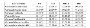 Adapun urutan waktu kejadian Gerhana Bulan Total adalah sebagai berikut: