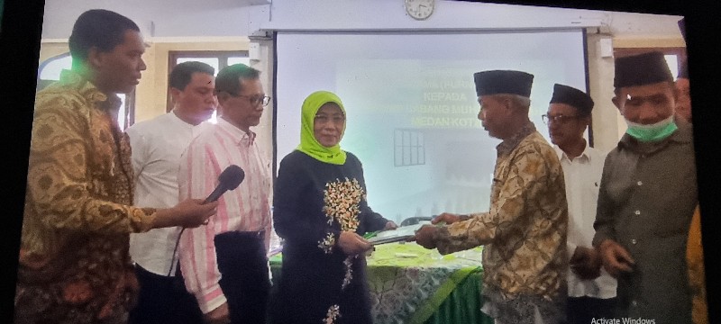 Medan, InfoMu.co – Penandatanganan wakaf berlansung penuh khitmat dan haru , Sabtu,( 27/8) siang di Aula Masjid Taqwa Muhammadiyah Jalan Demak Medan bersama Notaris M. Syafii Lubis yang juga Wakil ketua PDM Kota Medan. Penyerahan wakaf itu menjadi bentuk kepercayaan masyarakat kepada Muhamamdiyah. Akhir-akhir ini banyak masyarakat menyerahkan asetnya kepada Muhammadiyah untuk dikelola bagi kepentingan pendidikan dan kesehatan.