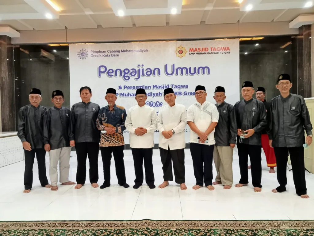 Sebelum itu, M Djufri, Ketua PCM GKB melaporkan proses pembangunan Masjid Taqwa SMP Muhammadiyah 12 Gresik tersebut. Ia mengatakan bahwa seiring dengan bertambahnya siswa dan jamaah pada tahun 2010, masjid pun dibugar. Selama beberapa tahun setelahnya, karena menjadi sekolah para juara, jumlah siswanya pun terus bertambah dengan sangat pesat. Sehingga masjid perlu kembali dipugar. Sehingga pada saat terjadi pandemi Covid-19 di tahun 2020 dilakukan pemugaran, dan akhirnya pada tangga 11 Juli 2022 ini masjid dapat diresmikan.