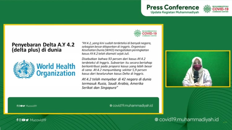 Yogyakarta, InfoMu.co – Berangkat dari kehawatiran Muhammadiyah Covid-19 Command Center (MCCC) PP Muhammadiyah atas kondisi pandemi yang belum usai ini ditambah kemunculan varian baru Delta Plus. MCCC mengadakan Konferensi Pers bertajuk “Mencegah Delta A.Y 4.2 (delta plus)’’ pada Rabu (10/11/2021) melalui akun Youtube Muhammadiyah Covid-19 Command Center.