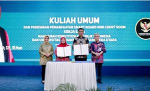 Medan, infomu.co – Mahkamah Konstitusi dan Fakultas Hukum Universitas Muhammadiyah Sumatera Utara meluncurkan Smart Board Minicourt Room di Auditorium UMSU, Jl Kapten Mukhtar Basri Medan, Jumat (3/3/2023).