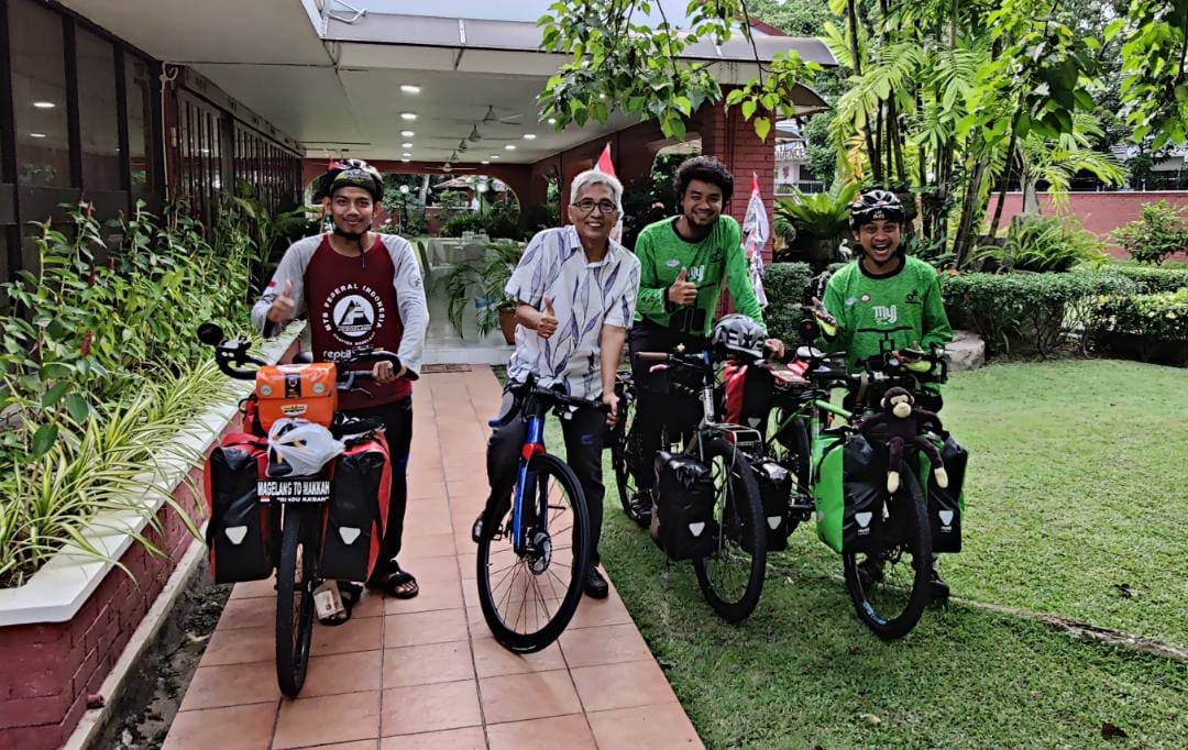 Fauzan mengatakan pihaknya berjumpa dengan pesepeda dari Gorontalo dan mulai bareng saat di ujung Singapura mau masuk Malaysia.