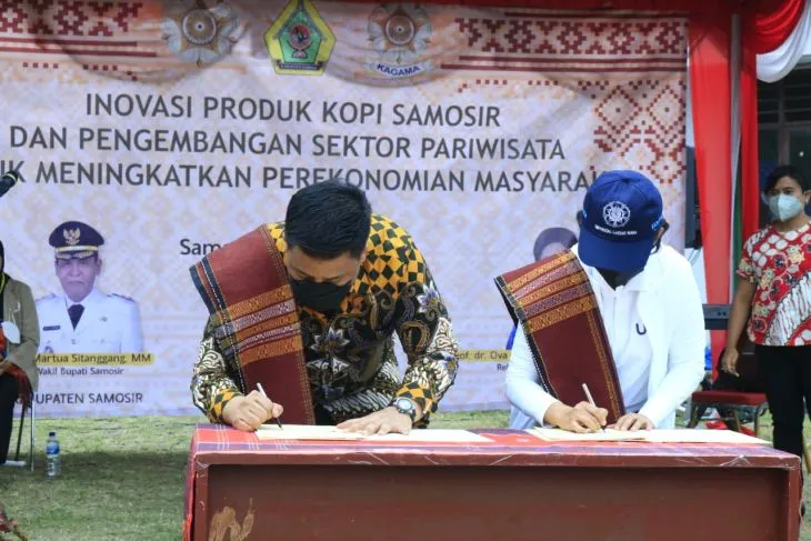 Pangururan, InfoMu.co – Pemerintah Kabupaten Samosir, SUmatera Utara menjalin kerjasama dengan Universitas Gadjah Mada dalam hal inovasi produk kopi Samosir dan pengembangan sektor pariwisata untuk meningkatkan ekonomi masyarakat di Kabupaten Samosir.