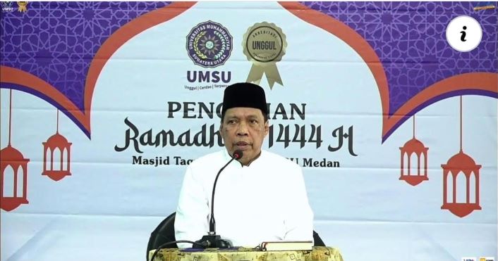 Medan, InfoMu.co – Rektor Universitas Muhammadiyah Sumatera Utara (UMSU), Prof. Dr. Agussani, MAP secara langsung membuka pengajian rutin Ramadan 1444 Hijriyah, Senin (27/3) di Masjid Taqwa UMSU Jalan Muchtar Basri No. 3 Medan. Pesannya, Ramadan tidak mengurangi kualitas bekerja para dosen dan tenaga pendidik. Dengan Ramadan, terus kita perkuat layanan kepada mahasiswa serta pengabdian pada tri dharma perguruan tinggi.
