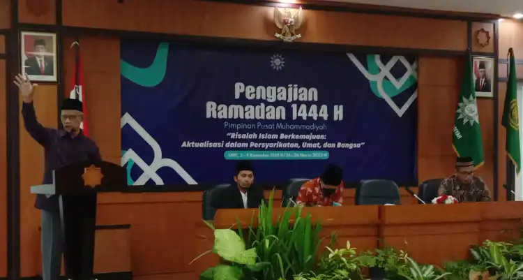 Yogyakarta, InfoMu.co – Pengajian Ramadhan 1444 Hijriah Pimpinan Pusat (PP) Muhammadiyah secara resmi ditutup, Minggu (26/3). Penutupan ini dipimpin langsung oleh Ketua Umum PP Muhammadiyah, Prof Dr KH Haedar Nashir, MSi yang digelar di Gedung Ar Fachrudin Unit B Lantai 5 Kampus Terpadu Universitas Muhammadiyah Yogyakarta (UMY).