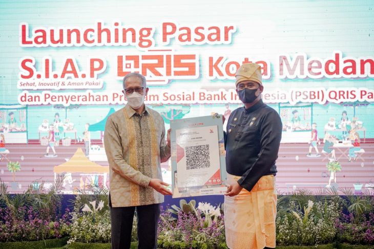 Wali Kota Medan Bobby Nasution menghadiri peluncuran empat pasar sehat, inovatif dan aman pakai (Siap) QRIS di Kantor Perwakilan Bank Indonesia Sumut, Medan, Jumat (18/3).