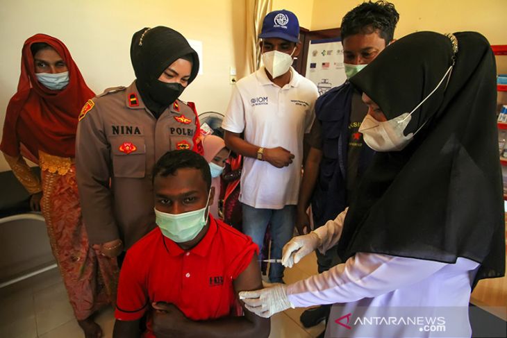 Vaksinasi 95 orang dari 105 warga Rohingya yang terdampar diperairan laut Aceh pada Sabtu (25/12/2021) itu untuk mencegah penularan dan penyebaran virus dan menjaga setiap individu mereka tetap aman dan sehat. (ant)