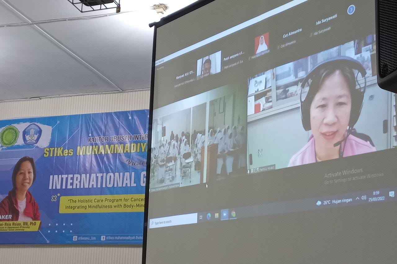 Lhokseumawe, InfoMu.co – Kantor Urusan Internasional Sekolah Tinggi Ilmu Kesehatan atau STIKesMu Lhokseumawe melaksanakan International Guest Lecture dengan nama program KUPAS (Kuliah Pakar Awal Semester). Tema yang diangkat kali ini adalah “The holistic care program for cancer patients and their families: Integrating mindfulness with body-mind-spirit group psychotherapy” dengan pemateri Prof. Fei-Hsiu Hsiao, RN, PhD Jumat, (25/3).