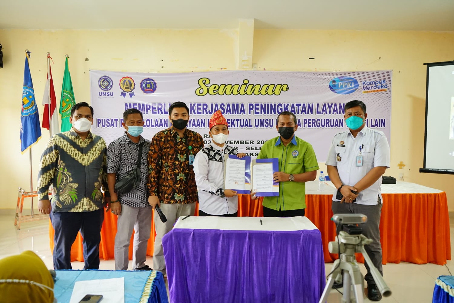 Acara sendiri di hadiri Sekretaris Lembaga PPKI UMSU Dedek Kurniawan Gultom, SE, M. Si serta di lanjutkan dengan sesi tanya jawab antara narasumber di antarnya dari Kanwil Kemenkumham serta dari Dirjen Penguatan Riset dan Pengembangan Kemenristek-BRIN dengan peserta seminar, sembari penandatangan MOU kerja sama antara PPKI UMSU dengan STKIP AL-Maksum. (gusti)