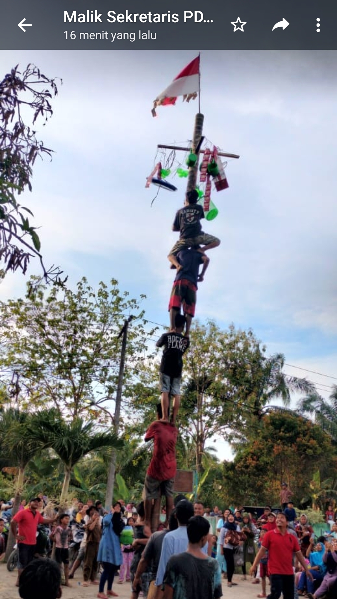 Serdang Bedagaai, InfoMu.co – PRM Cempedak Lobang Meriahkan HUT ke-77 RI, Rabu (17/8) kemarin. Suasan gembira juga mewarnai HUT RI ke 77 dengan melaksanakan berbagai kegiatan perlombaan bagi orang dewasa seperti panjat pinang dan untuk anak-anak seperti makan kerupuk, guli dalam sendok, paku masuk dalam botol, lari goni, dll.
