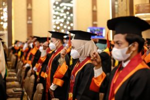 Selama pandemi Covid19, seluruh proses wisuda dilakukan secara heybrid yakni antara offline dan online.