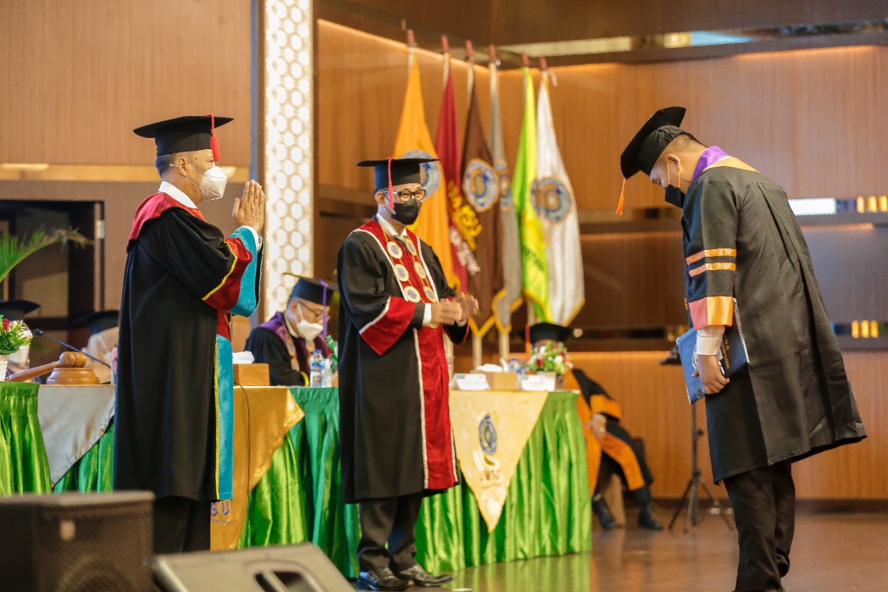 Selama pandemi Covid19, seluruh proses wisuda dilakukan secara heybrid yakni antara offline dan online.
