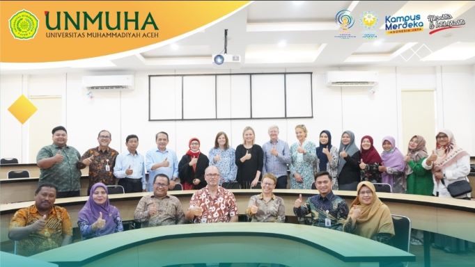 Banda Aceh, InfoMu.co – Rektor Universitas Muhammadiyah Aceh (UNMUHA) Dr. H. Aslam Nur, MA. Menyambut Tim Project Capacity Building Of Nursing Education in Indonesia (CABNEI) di Universitas Muhammadiyah Aceh. Ruang D2 gedung Fakultas Kesehatan Masyarakat UNMUHA.