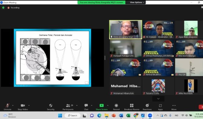 Moderator juga menyampaikan Untuk Gerhana Bulan kali ini, OIF UMSU akan mengadakan pengamatan dan sholat sunnah khusuf gerhana di OIF UMSU dan Live streaming di Channel Youtube OIF UMSU.