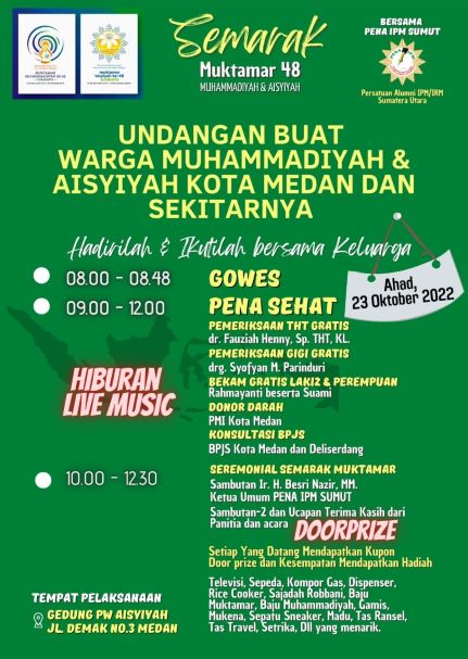 Medan, InfoMu.co – Persatuan Alumni Ikatan Pelajar/Remaja Muhammadiyah Sumatera Utara akan menggelar berbagai kegiatan untuk menyemarakkan gelaran Muktamar ke 48 Muhammadiyah dan ‘Aisyiyah.