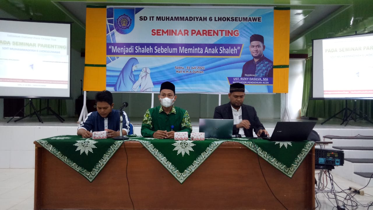 Kegiatan yang berlangsung selama dua jam yang dimulai dari Pukul 09.30 wib berlangsung khidmat. Parenting yang juga merupakan ciri khas kegiatan pada sekolah islam terpadu. Parenting merupakan salah satu kegiatan rutin yang dilakukan oleh SDIT Muhammadiyah 6 kota Lhokseumawe yang dimulai setiap awal tahun pelajaran baru dan waktu lain yang telah diprogramkan. Parenting yang bertema : “ Menjadi Shaleh sebelum meminta anak Shaleh” seakan mengajak para orangtua sadar, bahwa shaleh itu dimulai dari mereka para orang tua, baru anak akan mengikutinya menjadi anak yang shaleh, ujar Faisal.